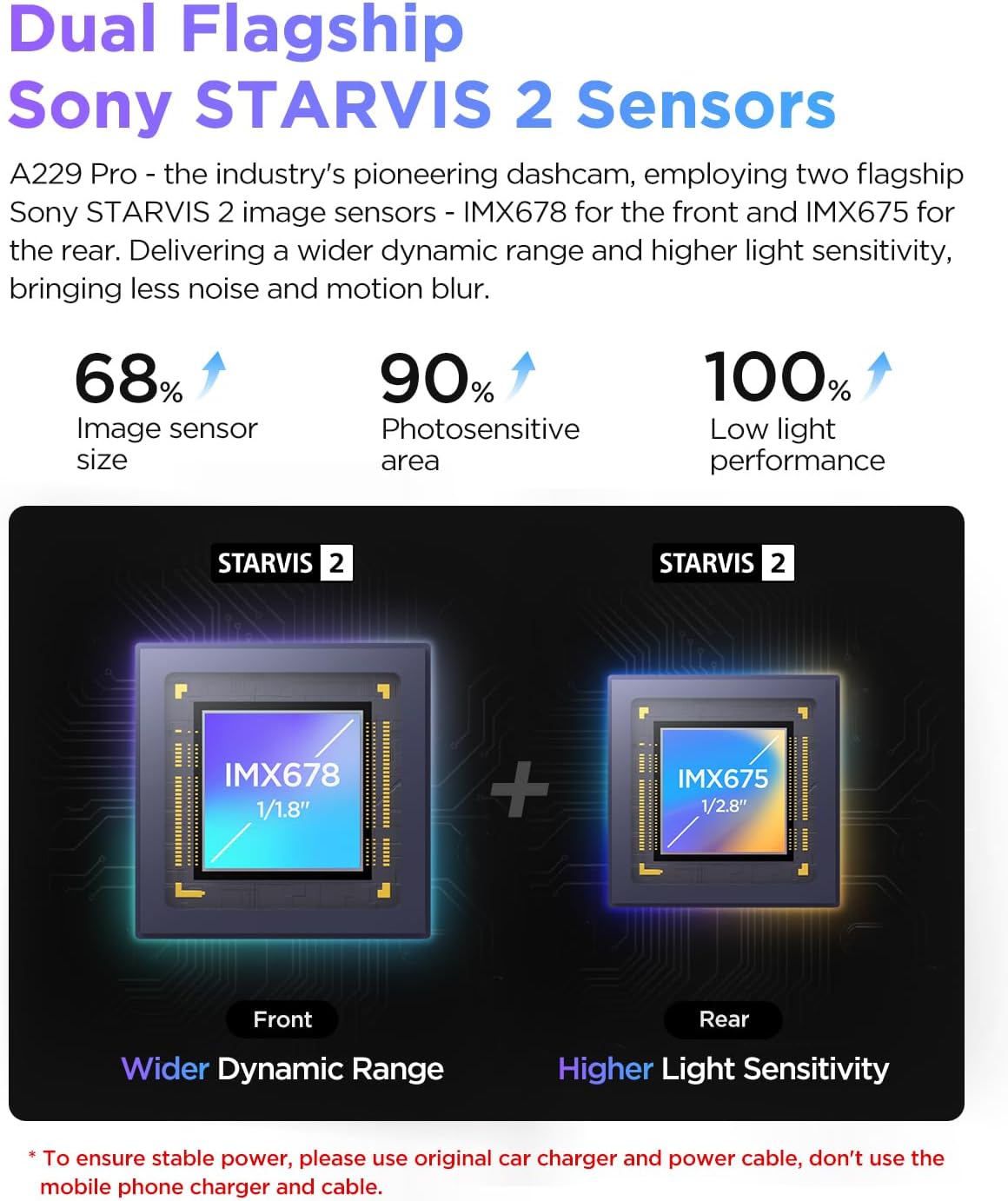 VIOFO A229 Pro 3 Channel 4K HDR Dash Cam, Dual STARVIS 2 Sensors IMX678 & IMX675, 4K+2K+1080P Front Inside and Rear Triple Car Camera, 5GHz WiFi GPS, Voice Control, 24H Parking Mode